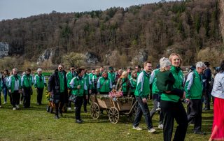Pünktlich um 14:00 Uhr zog der TV Oberndorf, begleitet von den zünftigen Klängen der Marktkapelle Bad Abbach, am Mattinger Donauufer ein.