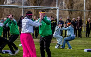 Ob beim traditionellen Holzscheitlknien, bei Geschicklichkeitsaufgaben oder beim Beweis der nötigen Trinkfestigkeit – die Abordnung des TV Oberndorf ließ sich nicht beirren. Mit viel Humor, Ausdauer und dem nötigen Quäntchen Glück meisterten sie alle Aufgaben, die ihnen die Mattinger „aufbrummten“.